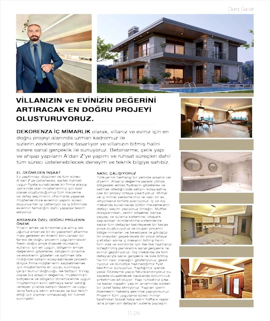 Ev yenileme, iç mimari dekorasyon alanında profesyonel ekibi ile hizmet vermektedir. Kendini daima yenileyen, teknolojik gelişmeleri yakından takip eden, yıllar süren çalışmaları ile kazanmış̧ olduğu bilgi ve birikimlerini müşterilerine kalite ve üstün iş prensibiyle sunmaktadır.Villa tasarımlarından, kafeterya projelerine, ofislerden, hobi bahçelerine kadar ihtiyaç duyulan her projeyi A’dan Z’ye temelden alıp oturuma hazır vaziyete kadar başarıyla sonlandırmaktayız.